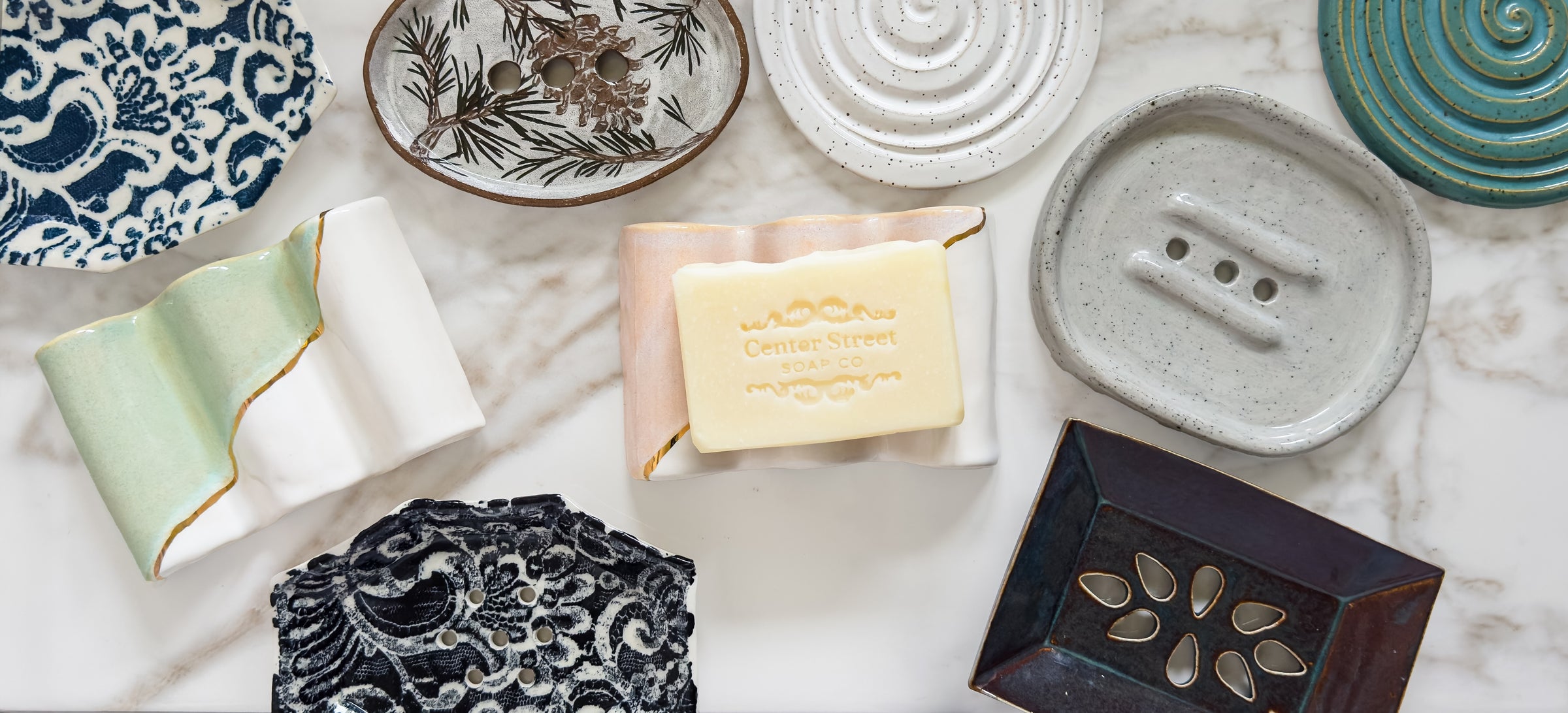 This gift box is part of a partnership with female ceramic artists across the US with a simple mission: to bring our customers beautiful soap dishes uniquely designed to maximize the life of their bar soap.